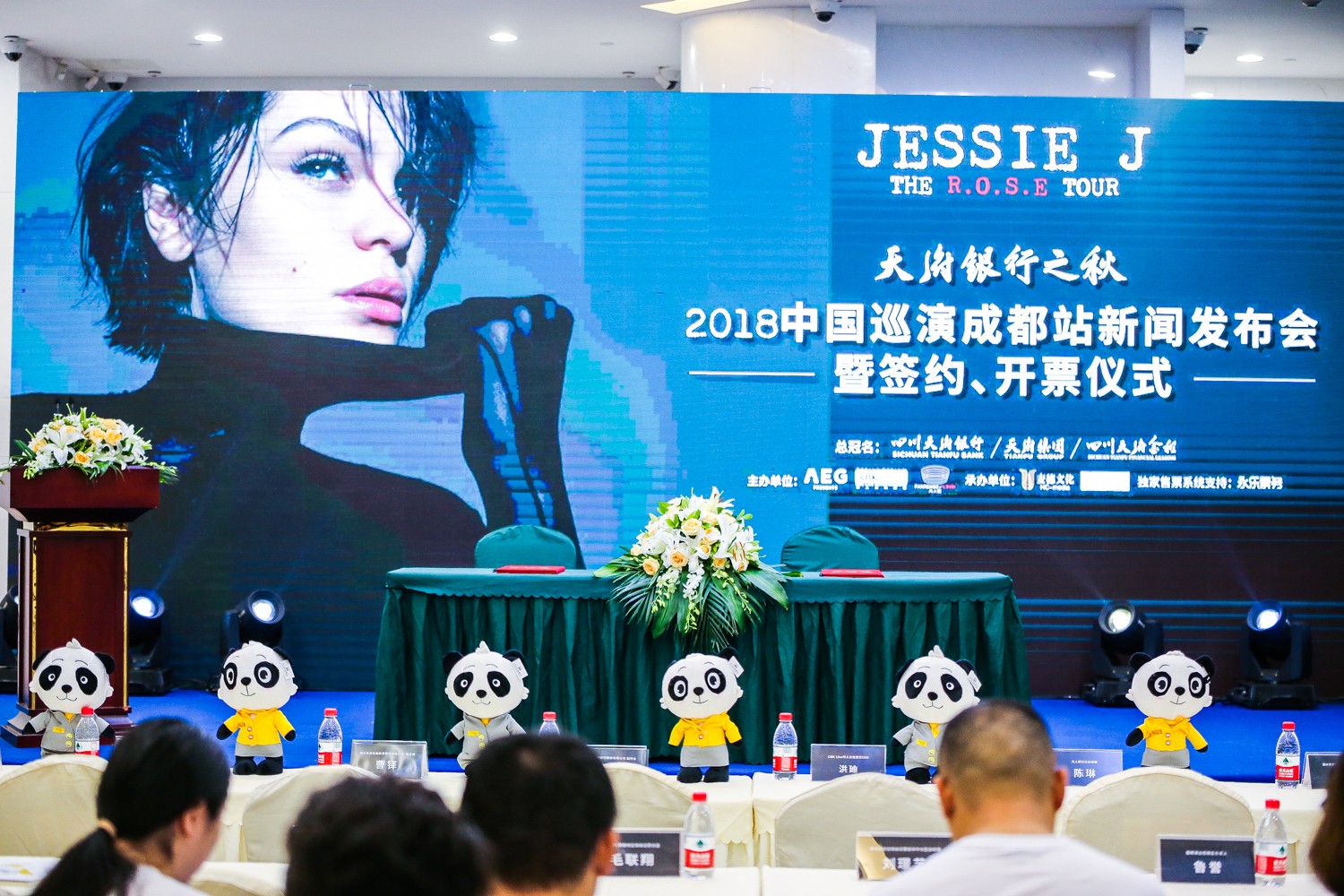 天府管理(集团)有限公司携手全面战略合作伙伴四川天府银行股份有限公司与四川天府金融租赁股份有限公司,联合冠名 “天府银行之秋Jessie J「THE R.O.S.E. TOUR」2018中国巡演成都站”,新闻发布会暨签约、开票仪式于7月30日成功举办。